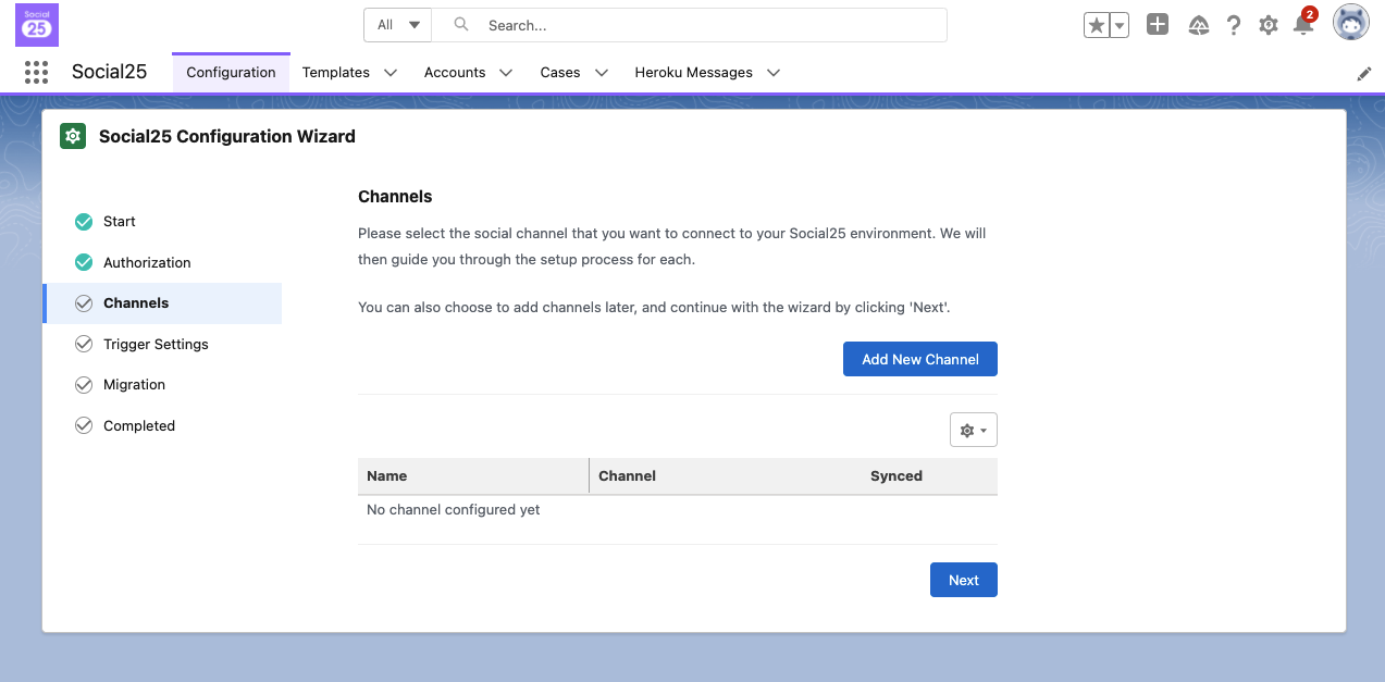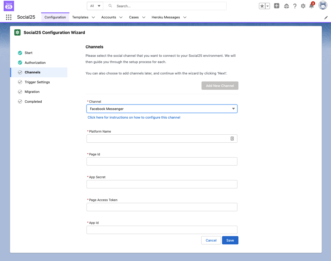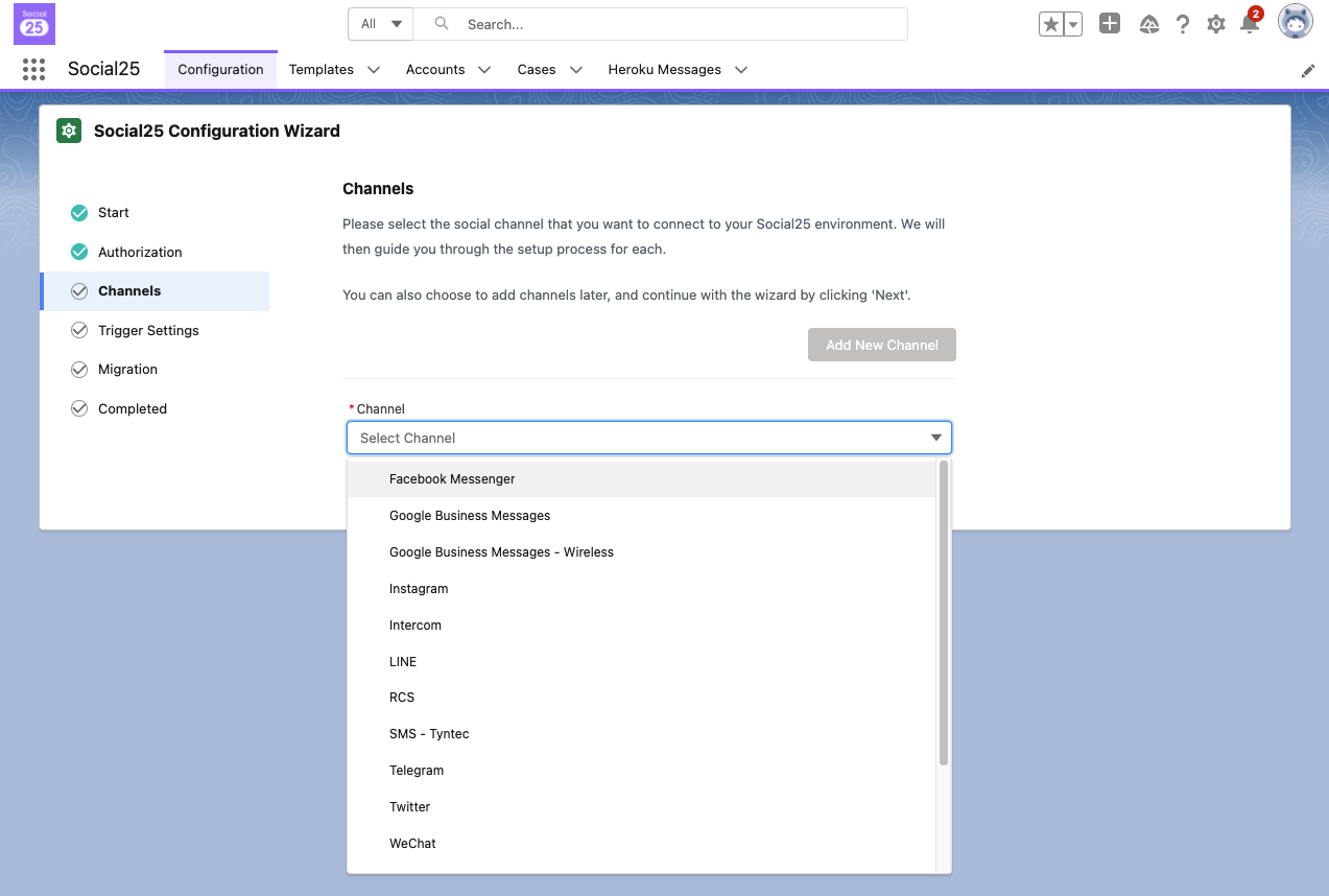 This section of the wizard allows you to onboard new messaging channels. When necessary, a link with additional configuration steps will be provided.