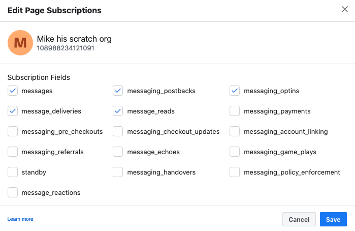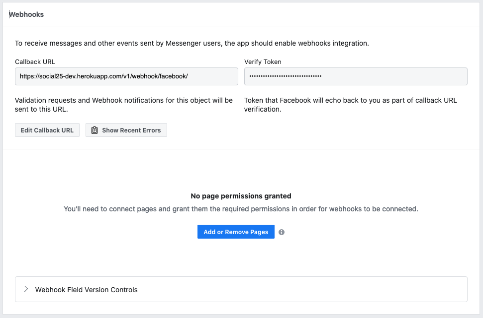 At this point everything has been configured and prepared for the connection to GoTallo. We recommend to send all details to the GoTallo team first and wait until they have configured everything before actually subscribing pages to the webhook.