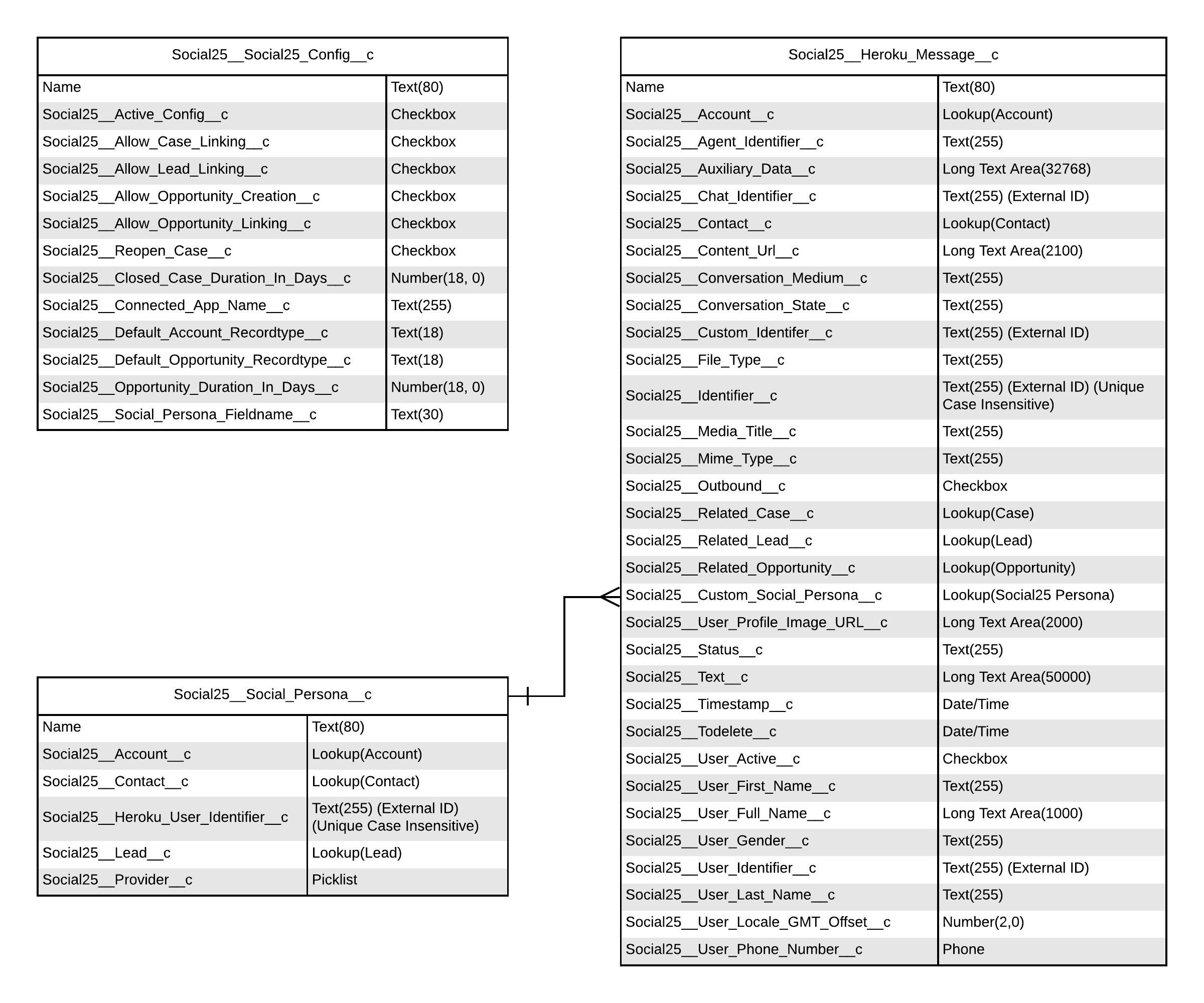 This is the complete datamodel of all objects contained in the GoTallo package. Using the Salesforce Bulk API records will get created in the Salesforce instance in the Social25__Heroku_Message__c object. Records that get inserted look something like this: