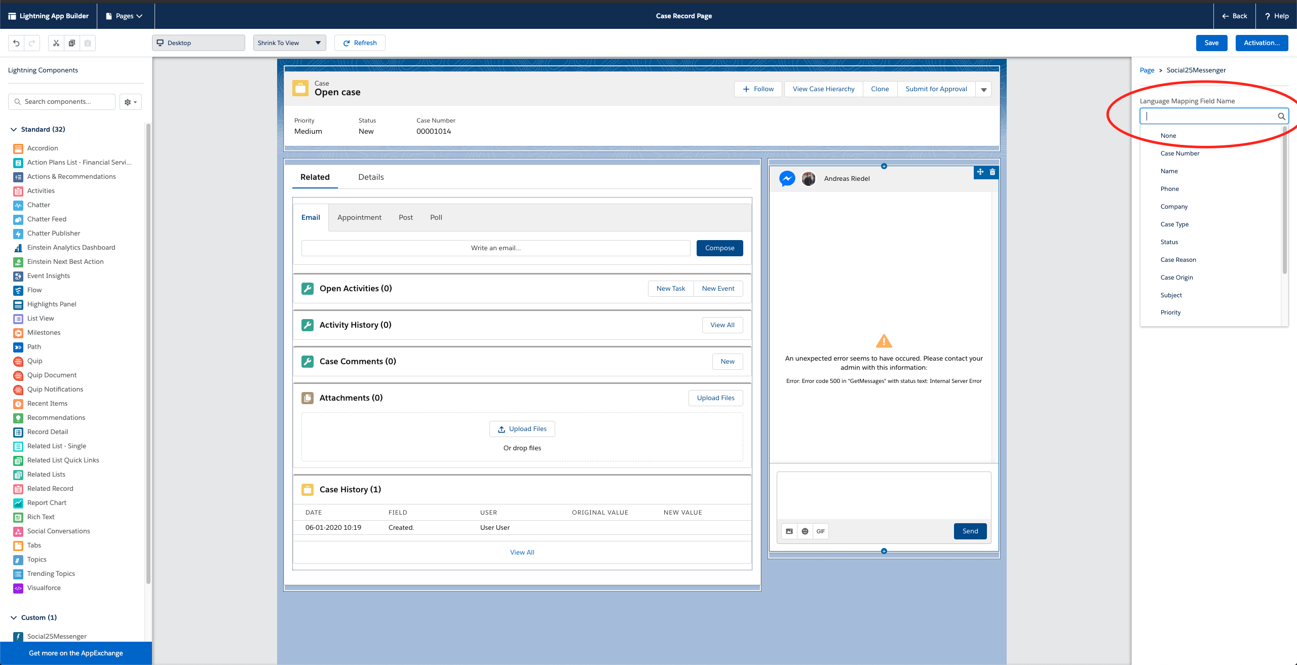 Click on the Social25Messenger Lightning Component