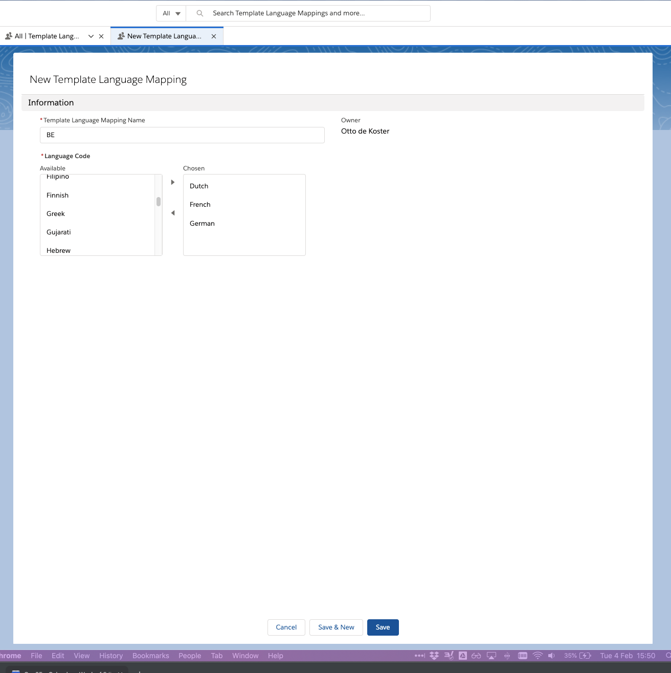 From the App Launcher, go to Template Language Mappings