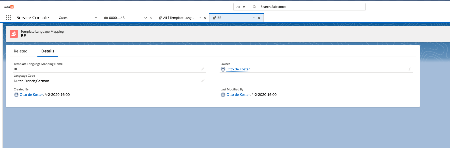 Let's now assume that your are chatting from a case, and that your Case object contains a formula field "Country". The data in field is fed from the related account and contains the value "BE" for your Belgian customers. A corresponding language mapping would look as follows: