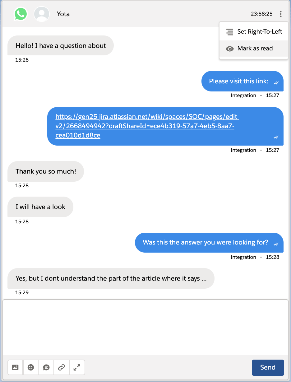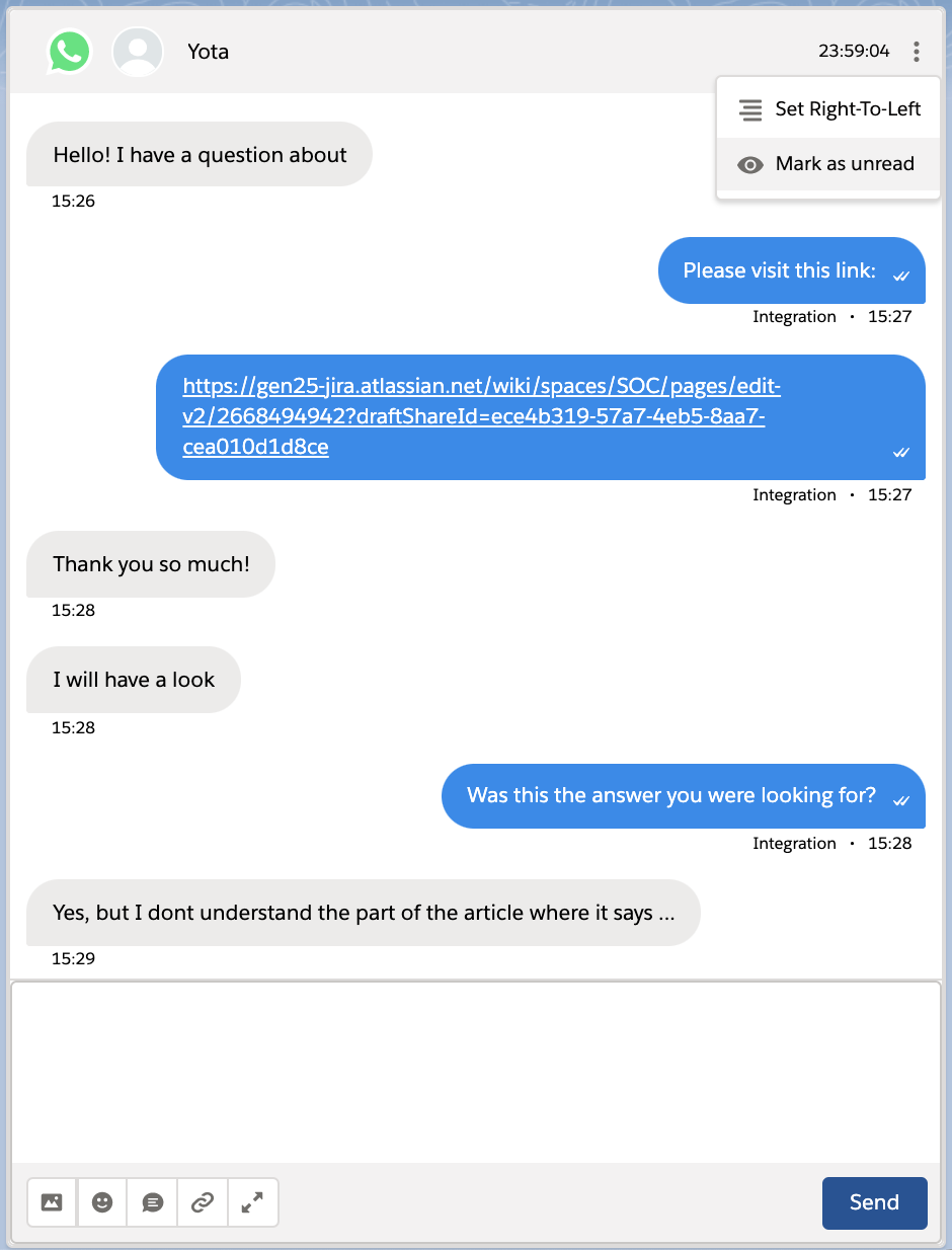 Note: If you click the new message input area, the conversation will be marked as read.