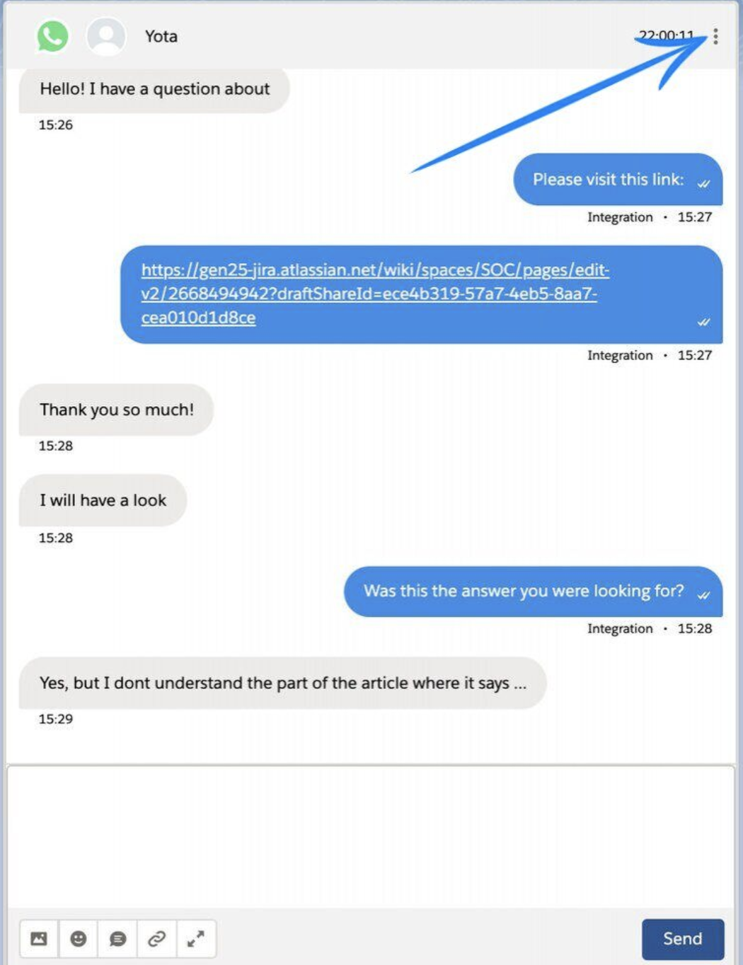 Press the three dots icon on the right side of the messenger header: